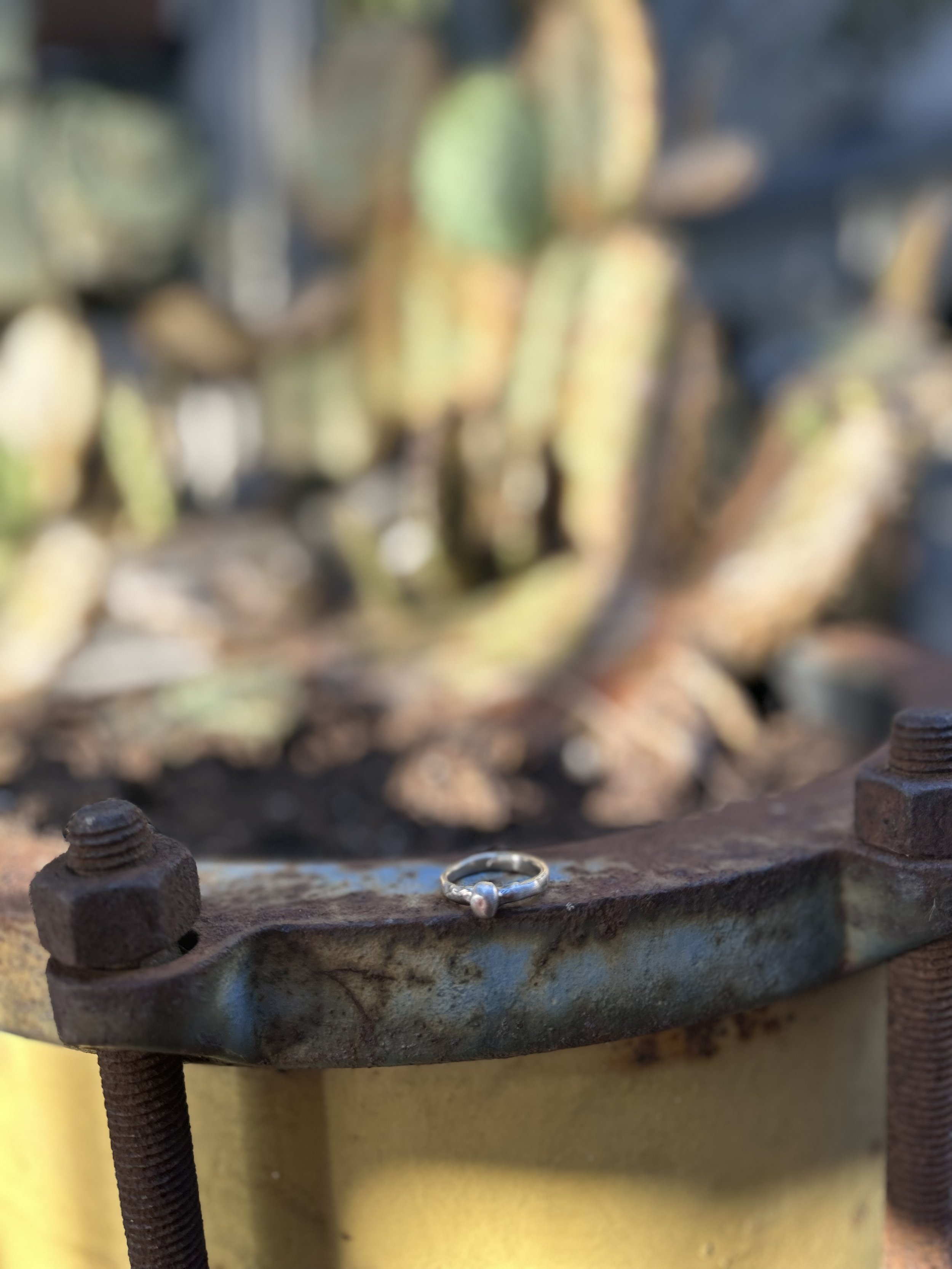 Sterling Silver with a black patina to emphasize the natural texture within this ring.