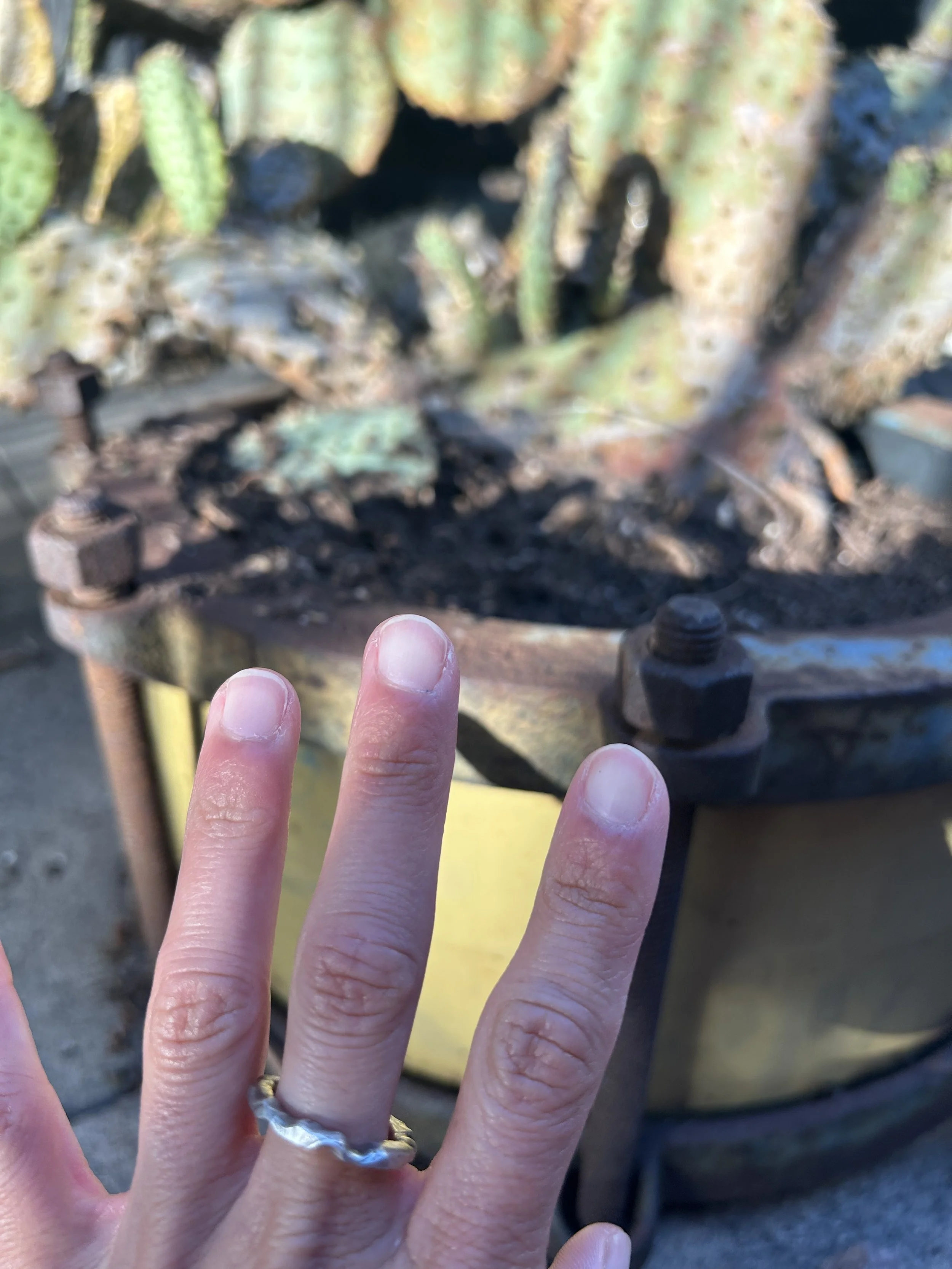 Sterling Silver, with a black patina to highlight the natural textures within this ring.